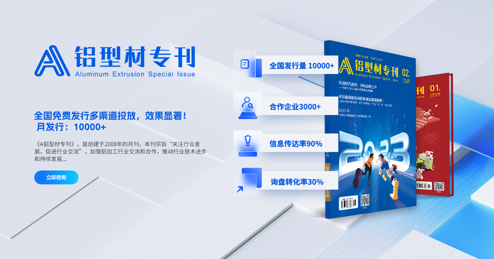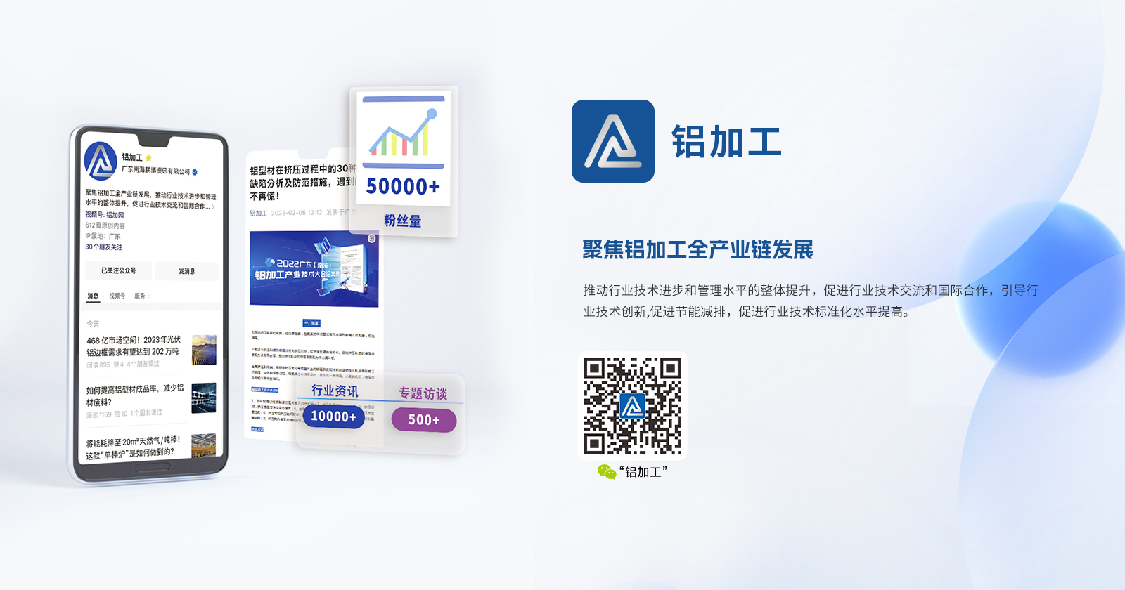 鋁加網(www.albiz.cn)是聞名鋁加工行業的垂直門戶網站,云聚鋁業新生態(tài),構建鋁業新場景,以albiz.cn 網站為核心,以移動云端、鋁加工微信、鋁加網視頻號、《鋁型材專刊》和《鋁世界》雜志為載體,成為了鋁加工行業資訊和精準傳播的首選傳媒。鋁加網,采集和發(fā)布全行業信息資訊,提供線上展覽、在線直播、短視頻、品牌策劃、品牌運營、品牌傳播等全方位的專業服務。